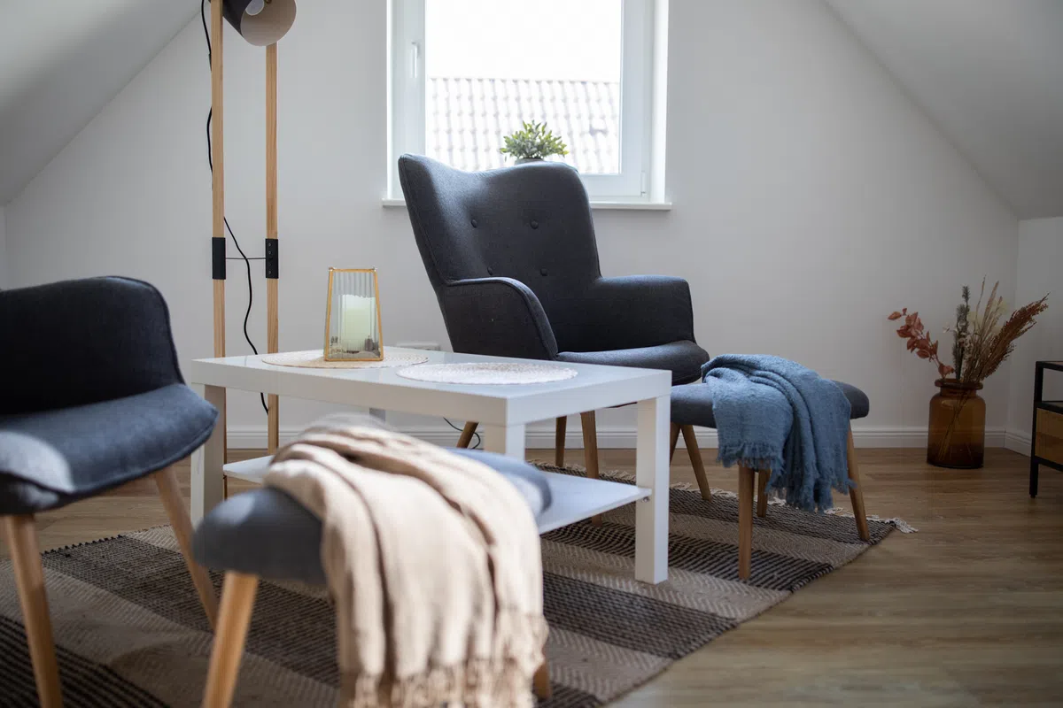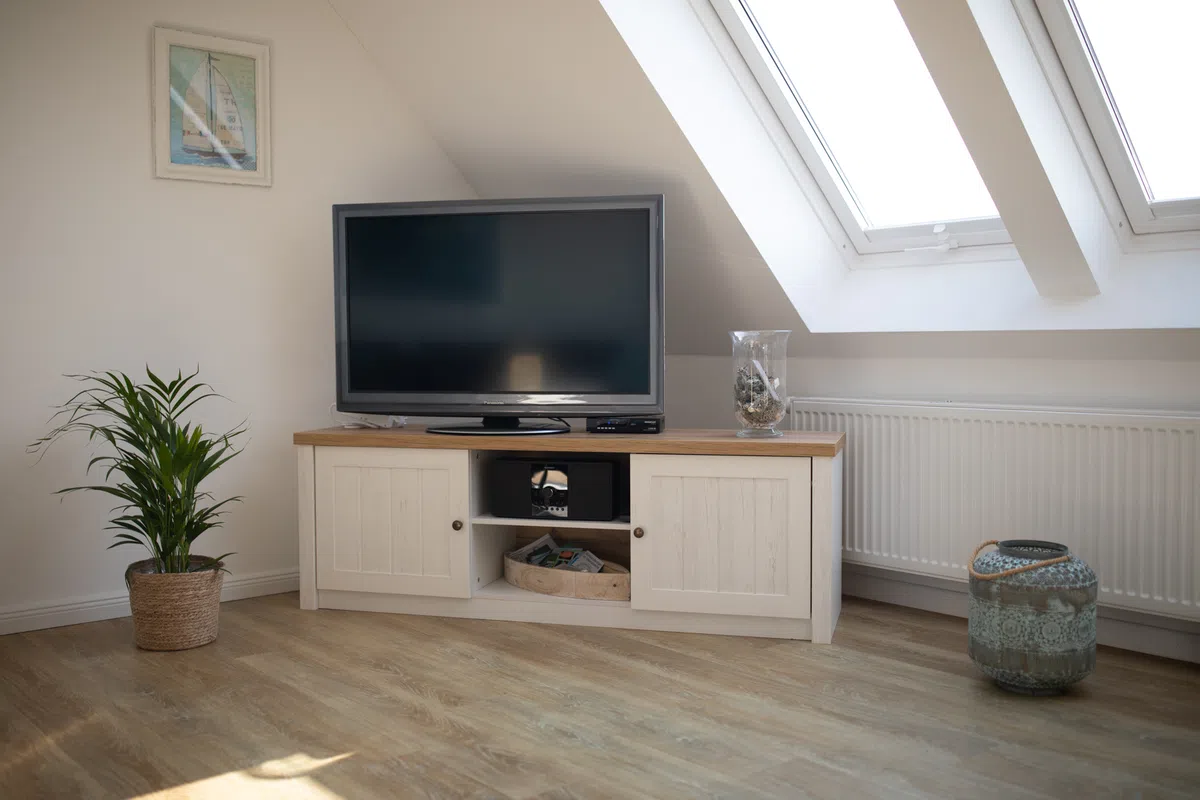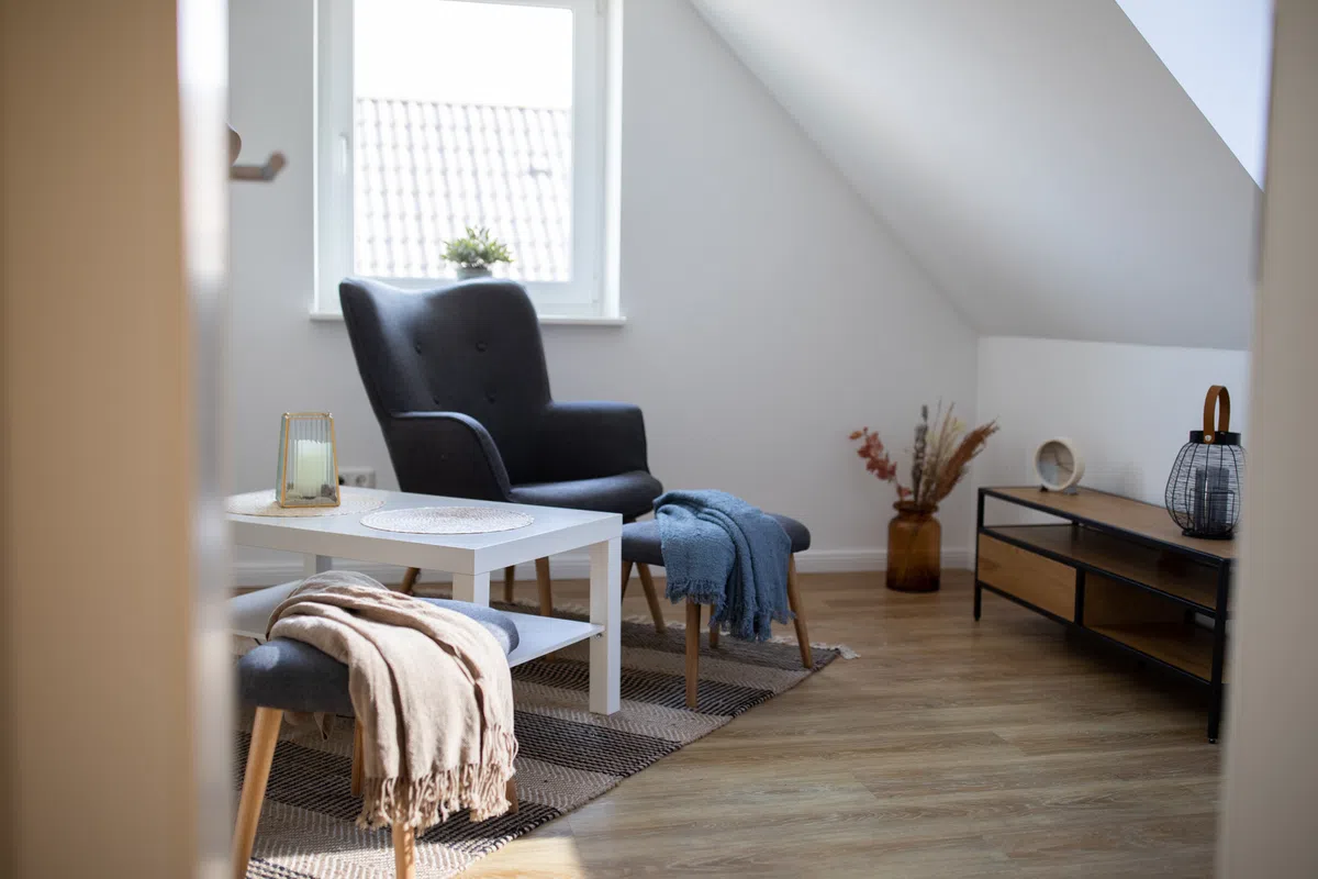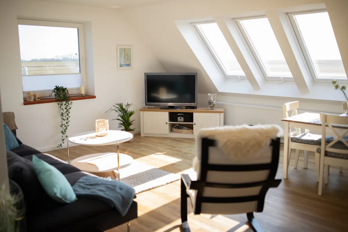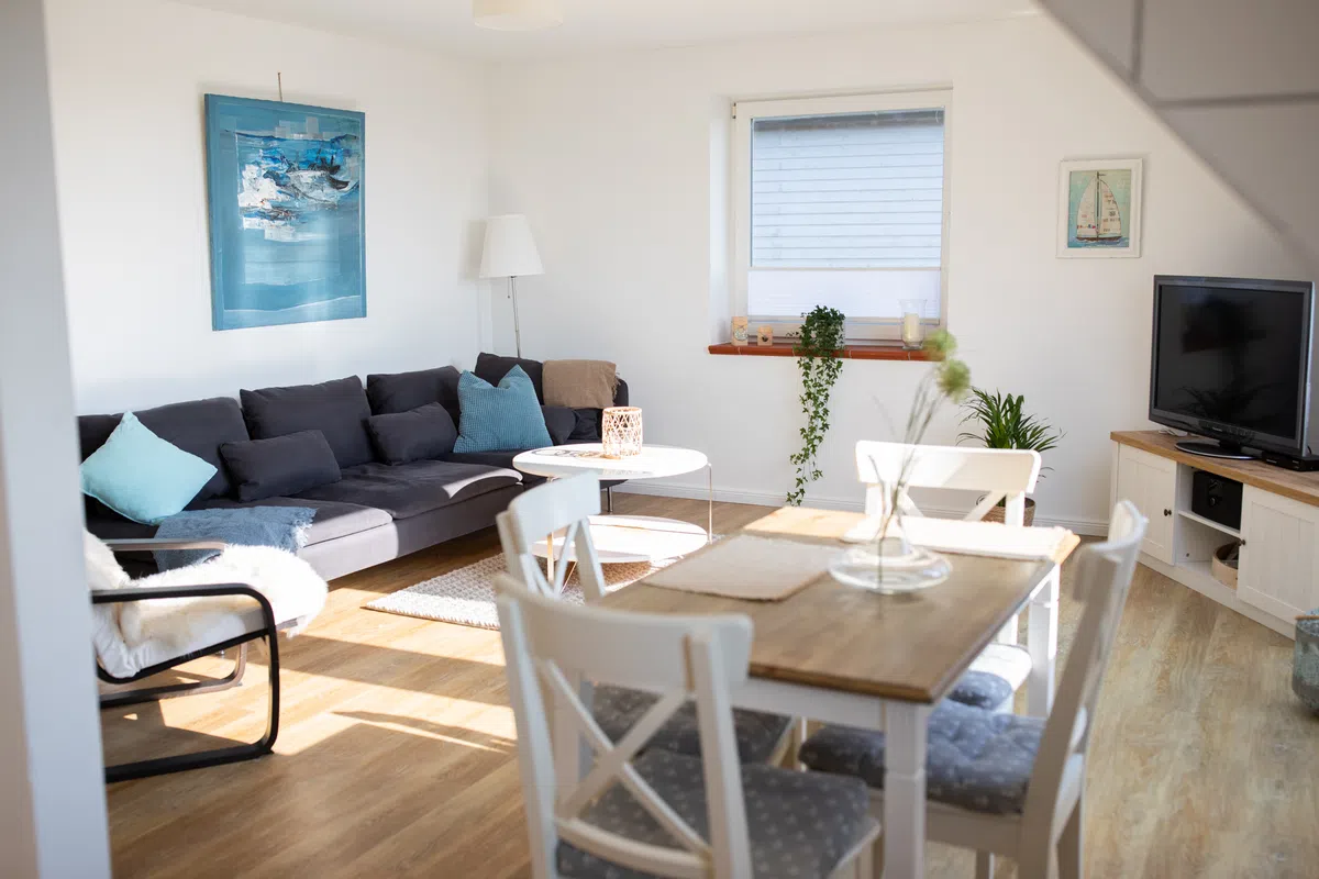 Unsere 70m² große Wohnung mit einem modern, maritim eingerichteten offenen Wohnraum,